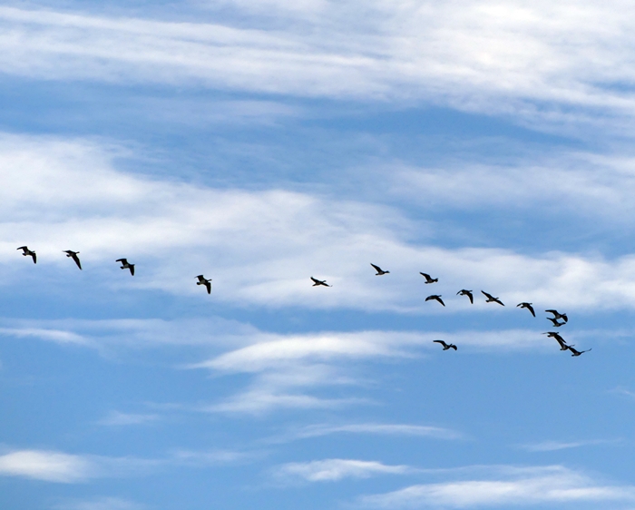 Gestern und vorgestern überquerten uns 2 Formationen Wildvögel. Einmal waren es Kraniche, einmal Wildgänse.